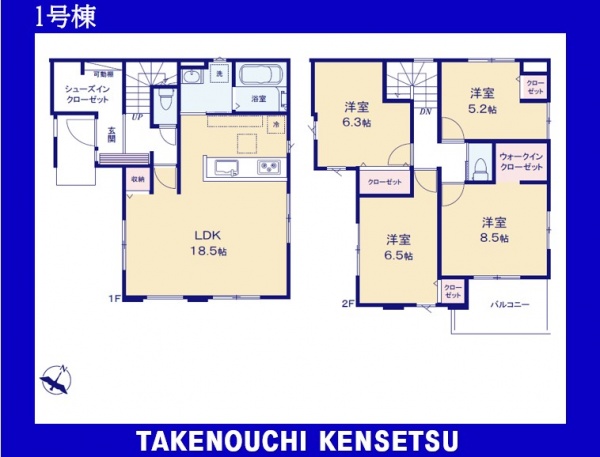 | 土地面積 | 1号棟111.85㎡、2号棟111.86㎡ | 建物面積 | 1号棟106.62㎡、2号棟104.03㎡ |